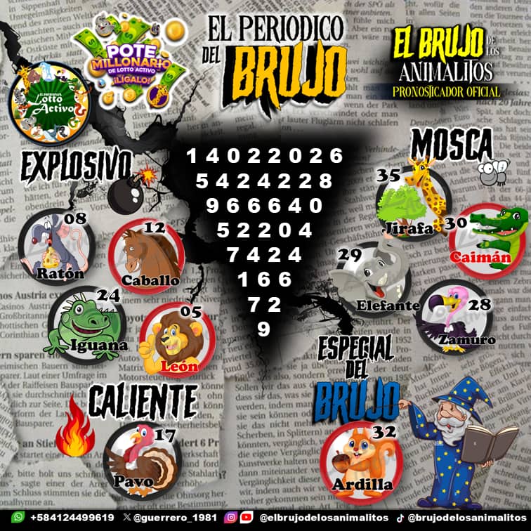 Pronósticos para Trio Activo El Patronus hoy Sábado 14-02-2026 Feb 14, 2026 El Brujo de Los Animalitos