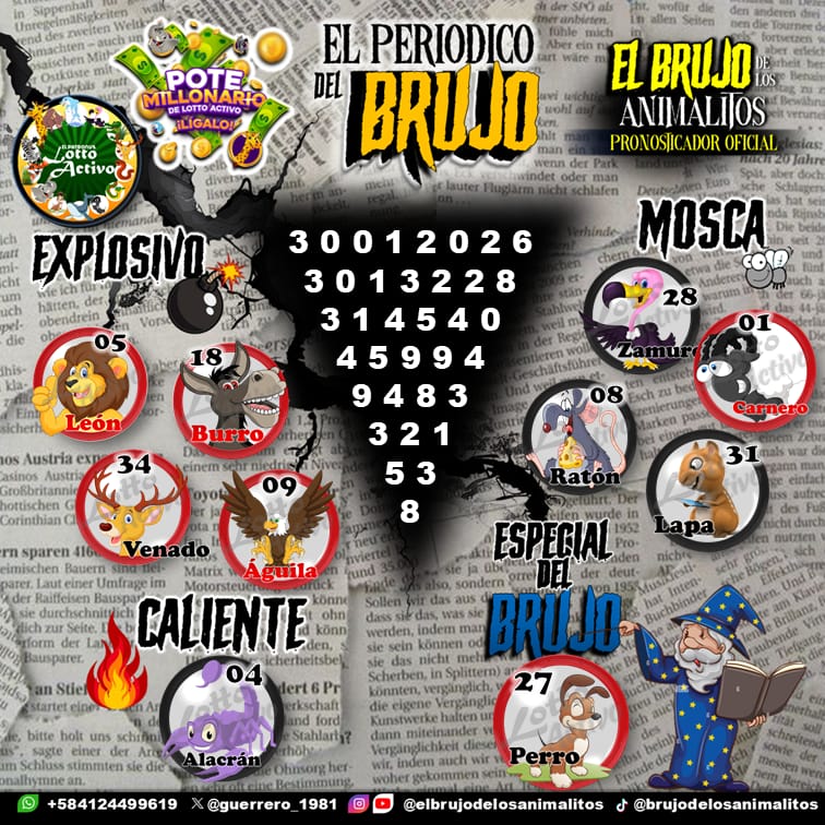 Pronósticos para Trio Activo El Patronus hoy Viernes 30-01-2026 Ene 30, 2026 El Brujo de Los Animalitos