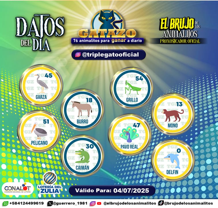 Navegación de entradas Pronósticos para Triple Gato Zodiacal hoy Viernes 04-07-2025 Pronósticos para Lotto Gato hoy Viernes 04-07-2025