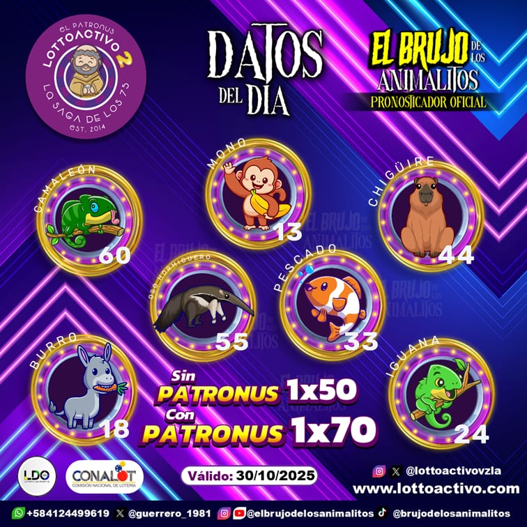 Pronósticos para Trio Activo El Patronus hoy Jueves 30-10-2025 Oct 30, 2025 El Brujo de Los Animalitos