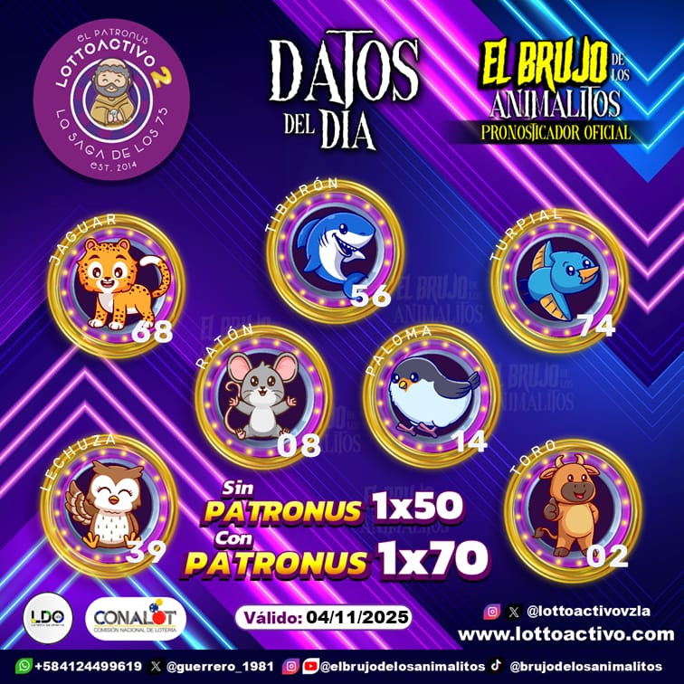 Pronósticos para Trio Activo El Patronus hoy Martes 04-11-2025 Nov 4, 2025 El Brujo de Los Animalitos