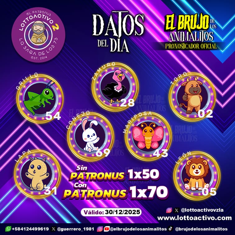 Navegación de entradas Pronósticos para Trio Activo El Patronus hoy Martes 30-12-2025 Pronósticos para Lotto Activo hoy Viernes 02-01-2026