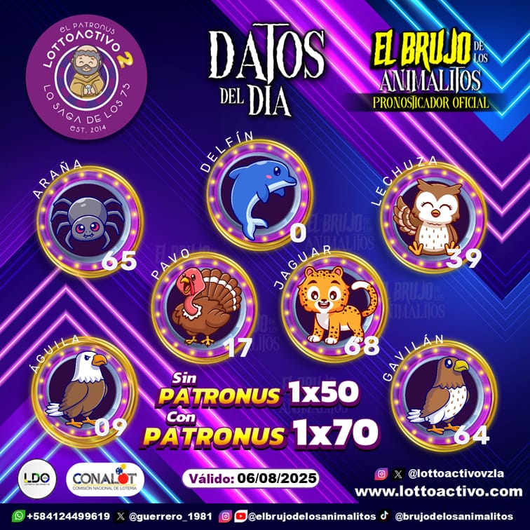Navegación de entradas Pronósticos para Trio Activo El Patronus hoy Miércoles 06-08-2025 Pronósticos para Lotto Activo hoy Jueves 07-08-2025