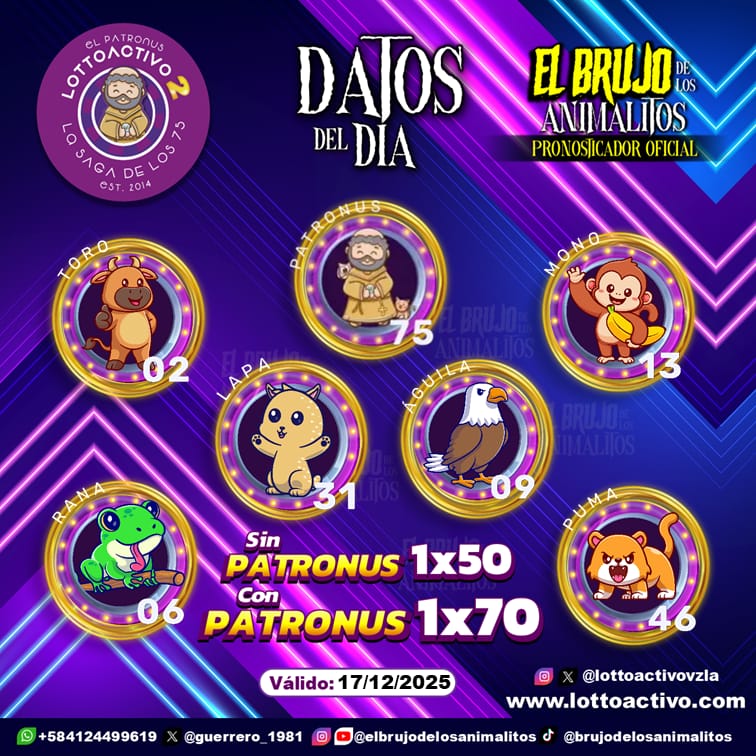 Navegación de entradas Pronósticos para Trio Activo El Patronus hoy Miércoles 17-12-2025 Pronósticos para Lotto Activo hoy Jueves 18-12-2025