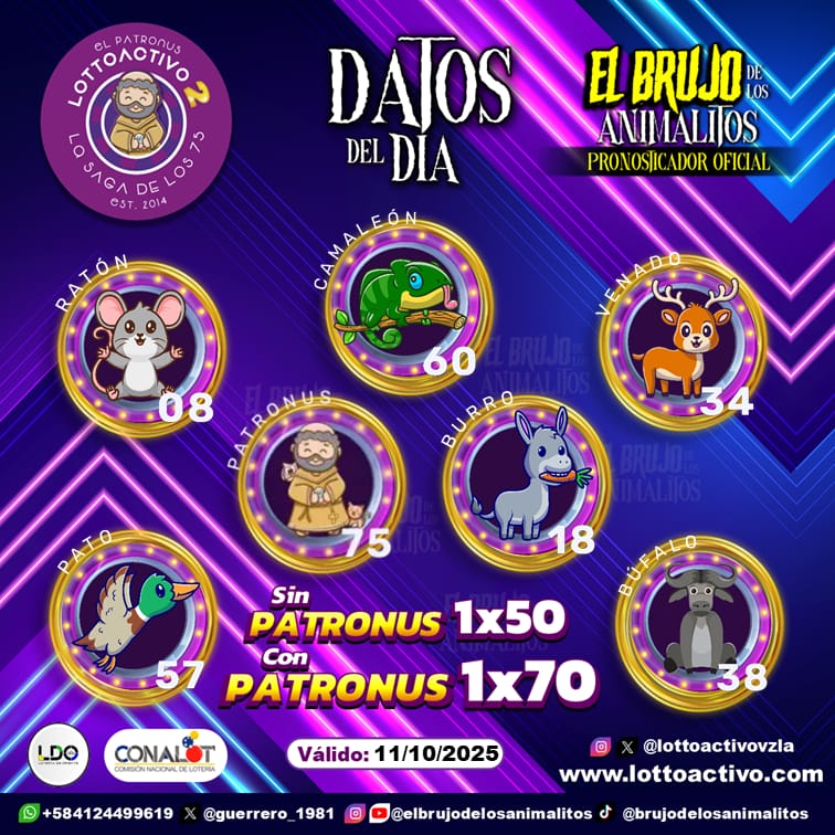 Pronósticos para Trio Activo El Patronus hoy Sábado 11-10-2025 Oct 11, 2025 El Brujo de Los Animalitos