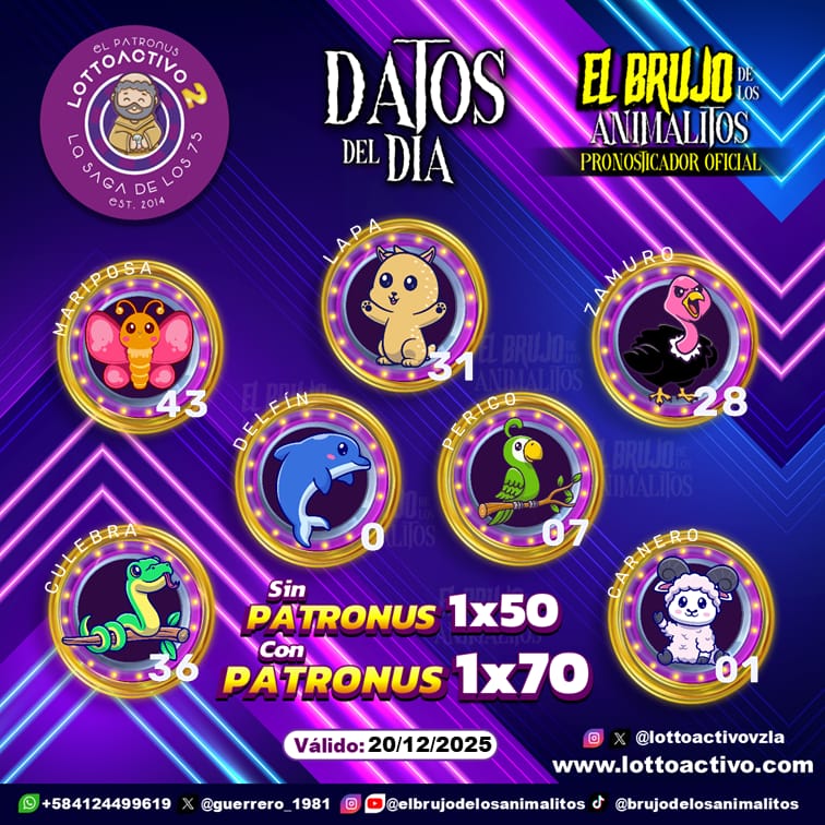 Pronósticos para Trio Activo El Patronus hoy Sábado 20-12-2025 Dic 20, 2025 El Brujo de Los Animalitos