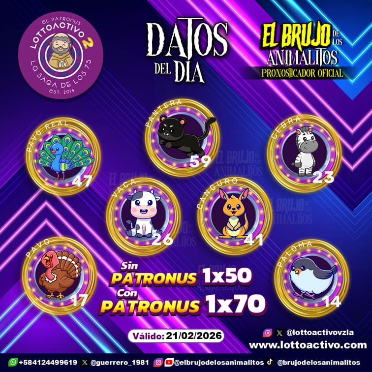 Pronósticos para Trio Activo El Patronus hoy Sábado 21-02-2026 Feb 21, 2026 El Brujo de Los Animalitos
