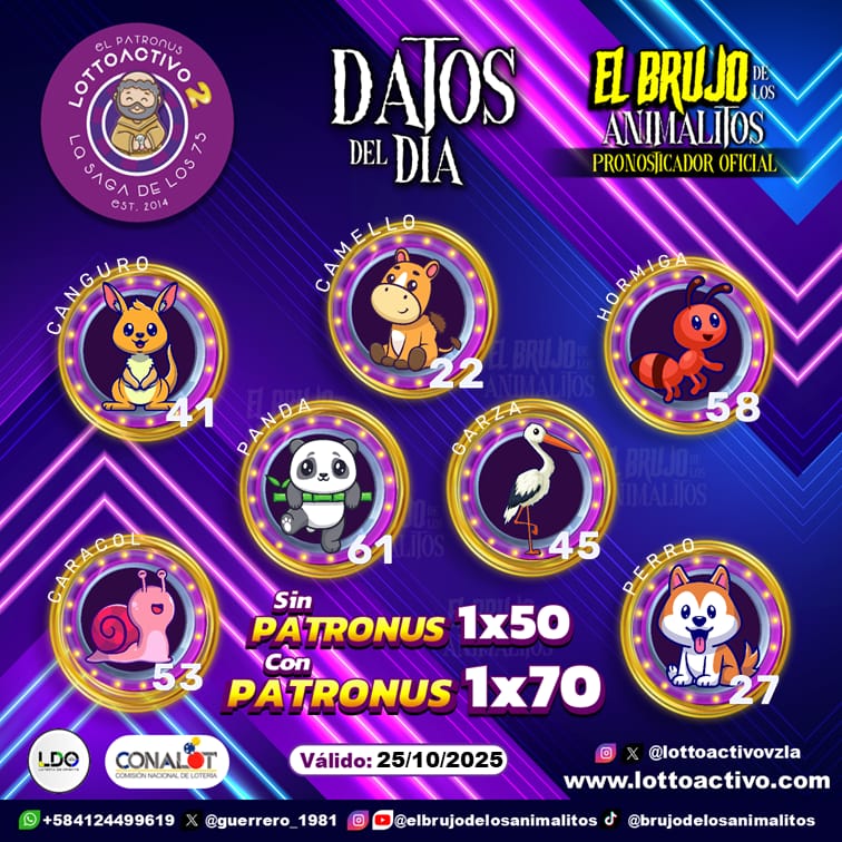 Pronósticos para Trio Activo El Patronus hoy Sábado 25-10-2025 Oct 25, 2025 El Brujo de Los Animalitos