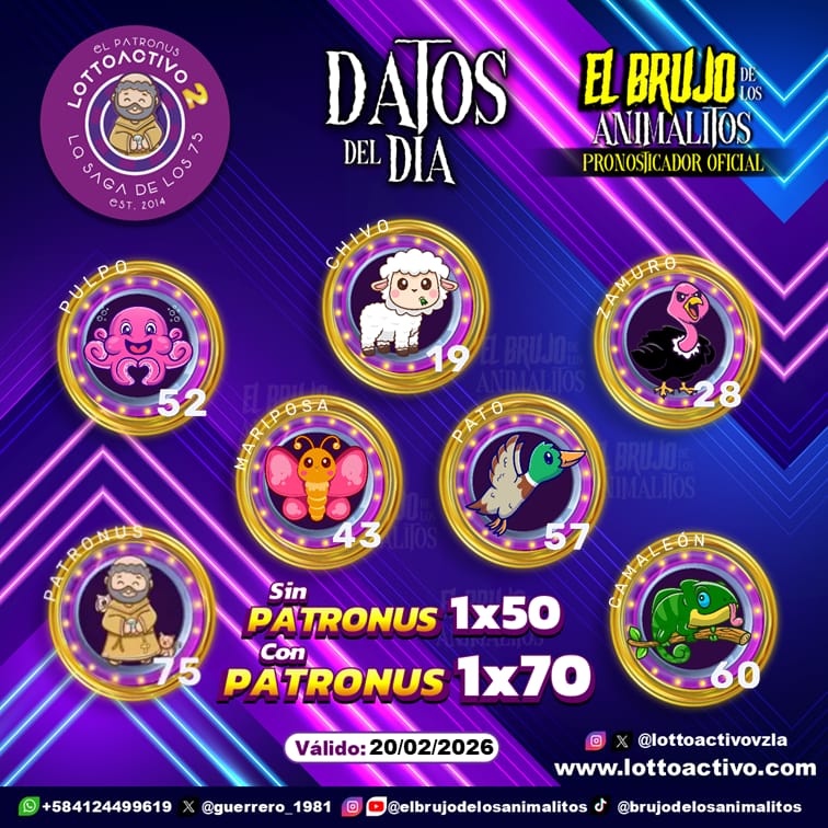 Pronósticos para Trio Activo El Patronus hoy Viernes 20-02-2026 Feb 20, 2026 El Brujo de Los Animalitos
