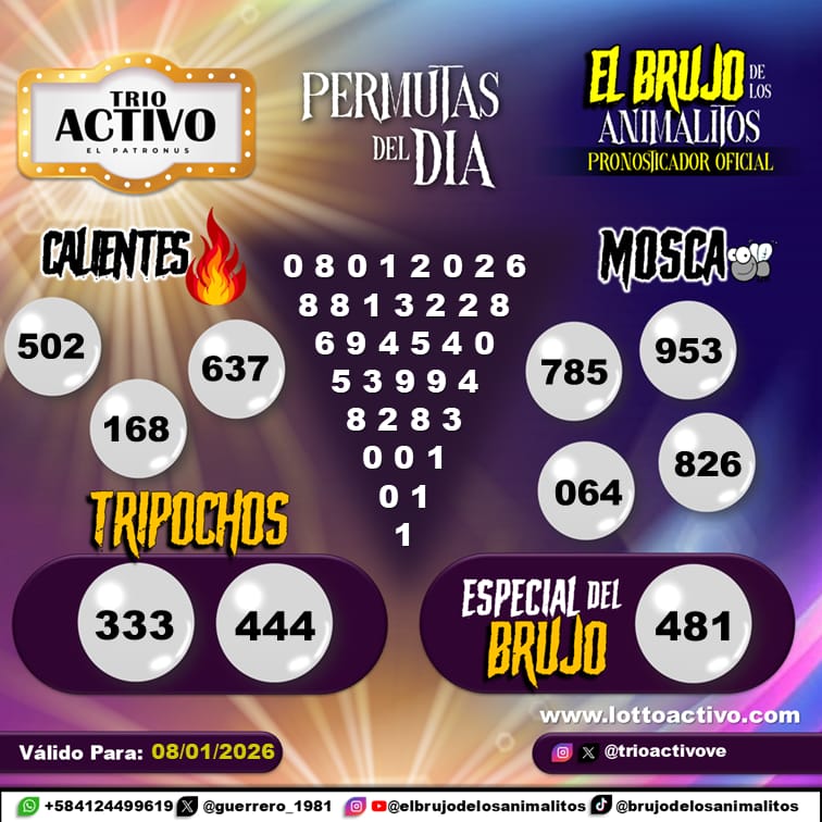 Pronósticos para Trio Activo El Patronus hoy Miércoles 14-01-2026 Ene 14, 2026 El Brujo de Los Animalitos