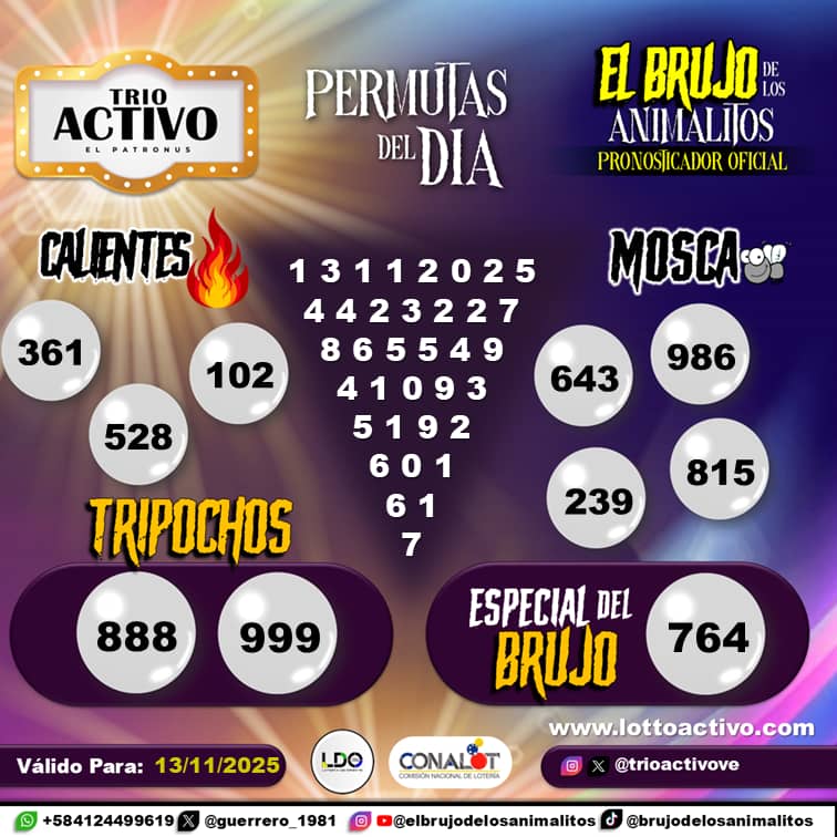 Pronósticos para Trio Activo El Patronus hoy Jueves 13-11-2025