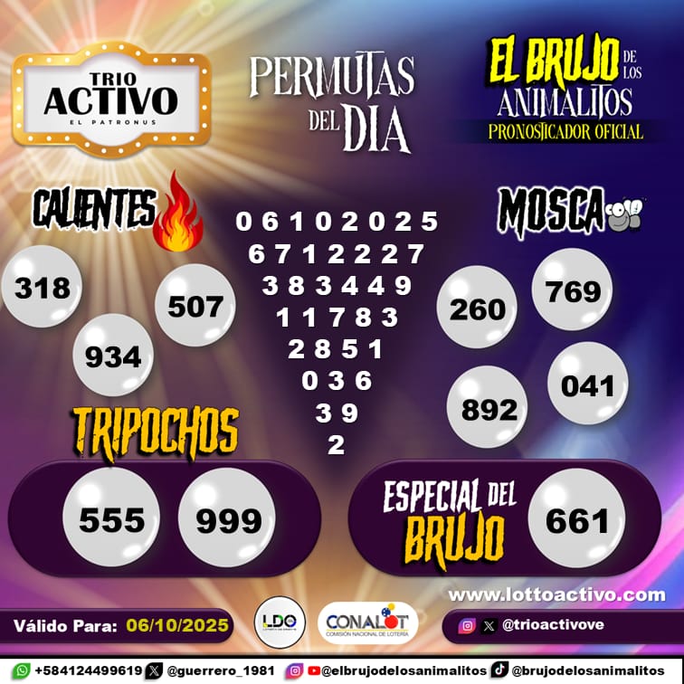 Pronósticos para Trio Activo El Patronus hoy Lunes 06-10-2025
