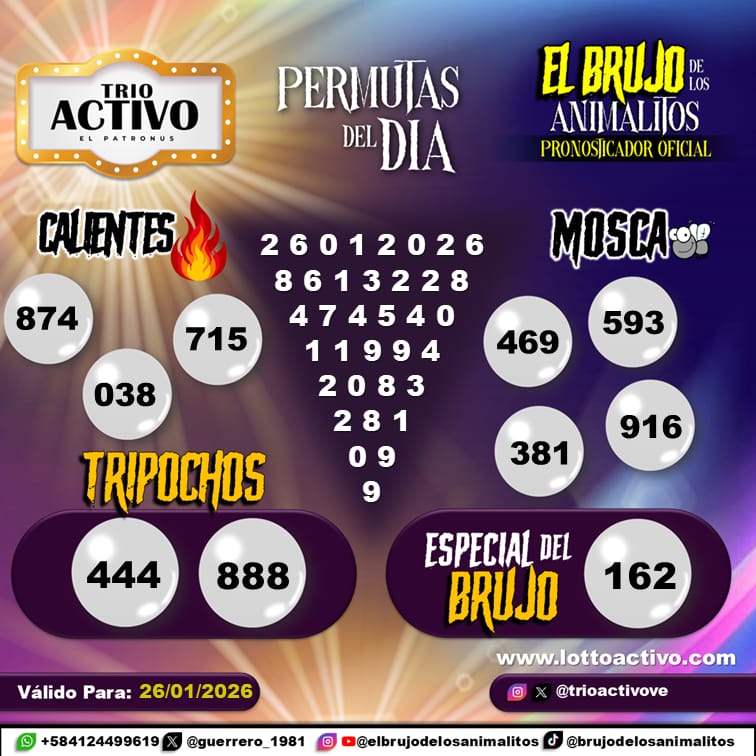 Pronósticos para Trio Activo El Patronus hoy Jueves 29-01-2026 Ene 29, 2026 El Brujo de Los Animalitos