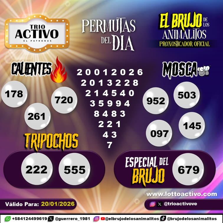 Pronósticos para Trio Activo El Patronus hoy Martes 03-02-2026 Feb 2, 2026 El Brujo de Los Animalitos