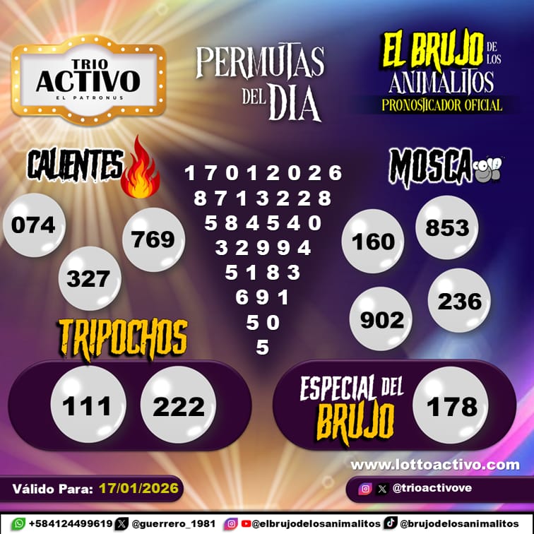 Pronósticos para Trio Activo El Patronus hoy Sábado 17-01-2026