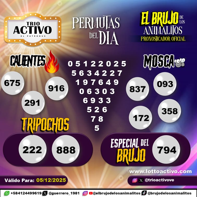 Pronósticos para Trio Activo El Patronus hoy Viernes 05-12-2025
