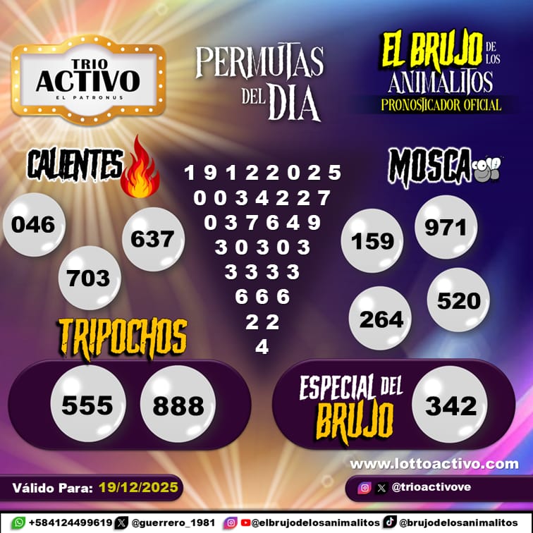 Pronósticos para Trio Activo El Patronus hoy Sábado 20-12-2025 Dic 20, 2025 El Brujo de Los Animalitos