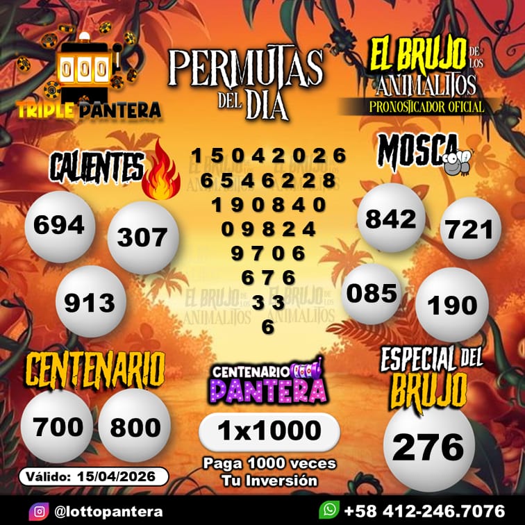 Navegación de entradas Pronósticos para Monje Millonario hoy Miércoles 15-04-2026 Pronósticos para Loto Animalito hoy Miércoles 15-04-2026