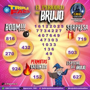 Pronósticos para Triple Fácil hoy Martes 16-12-2025